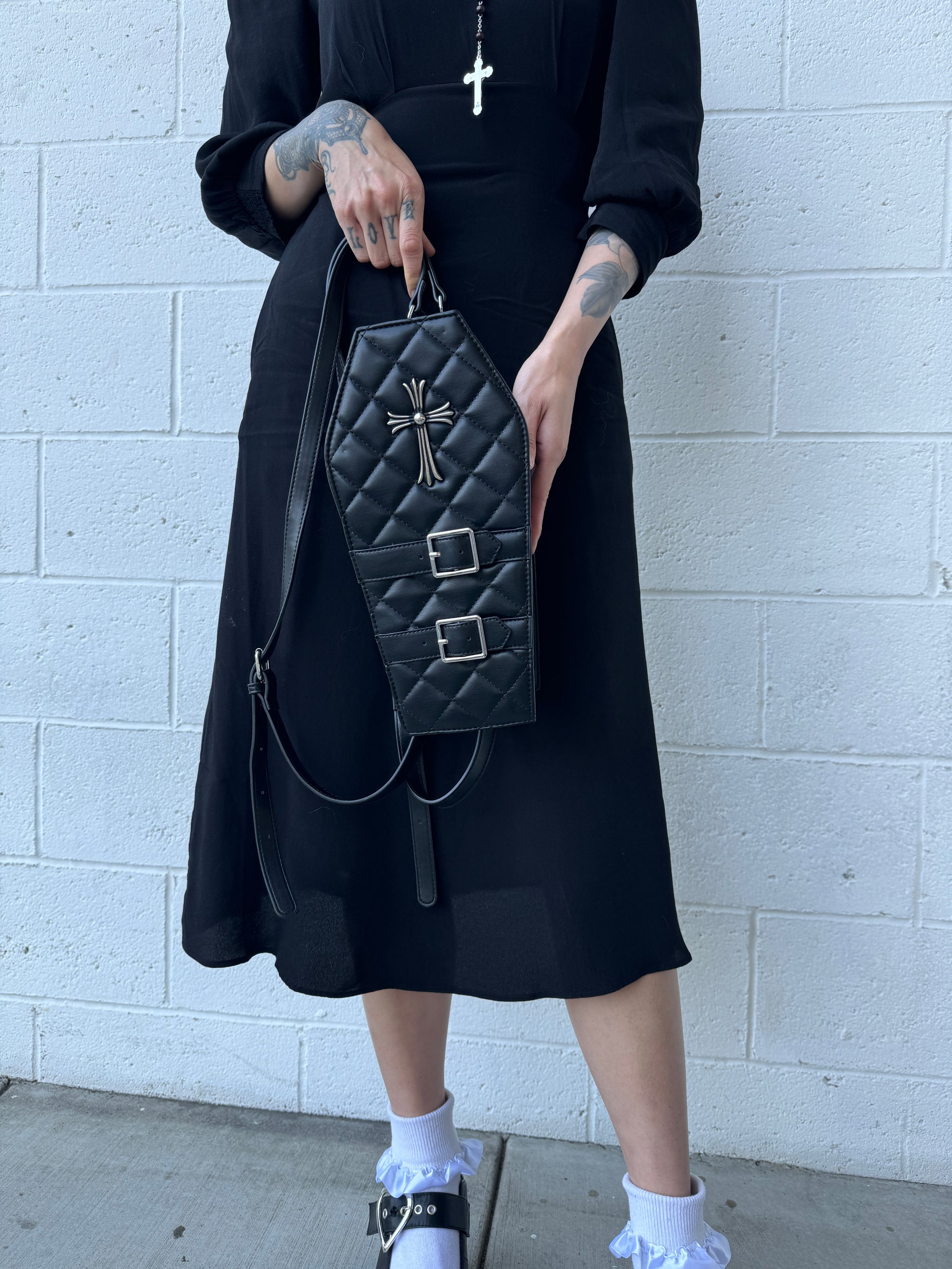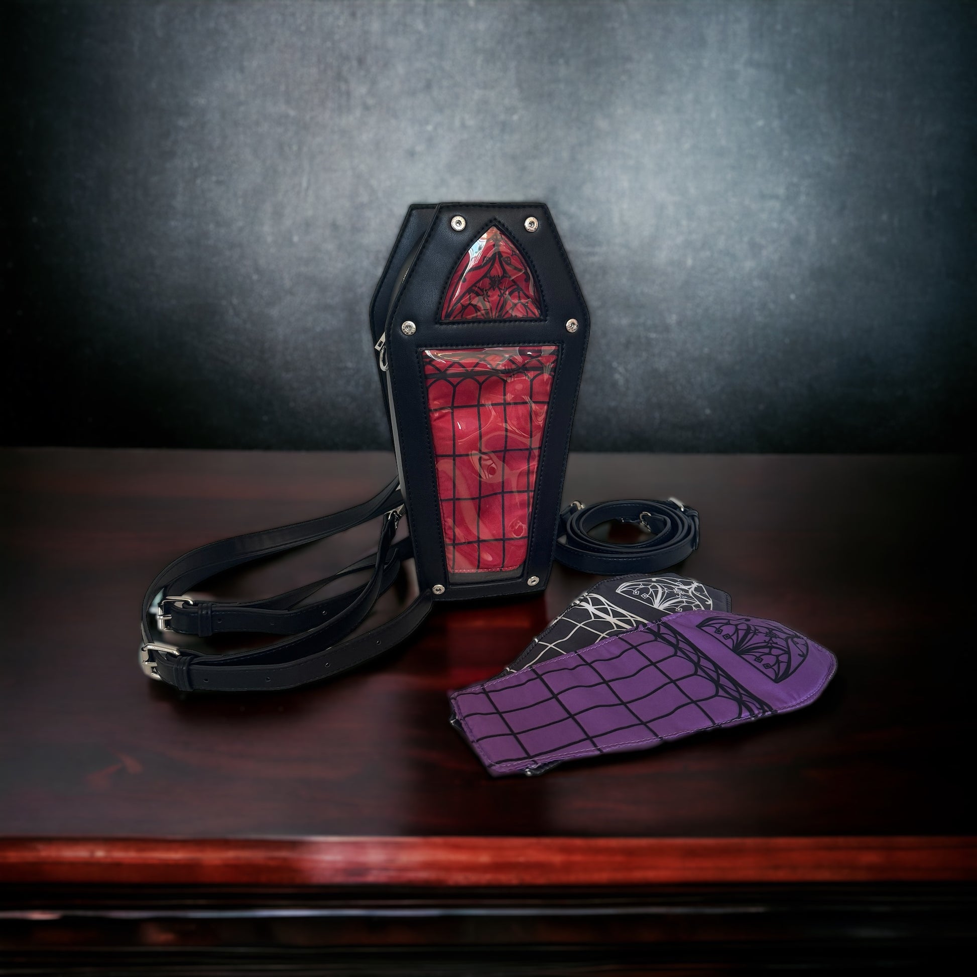 Faux leather coffin ita bag with a removable cover and 3 different inserts to choose from.
